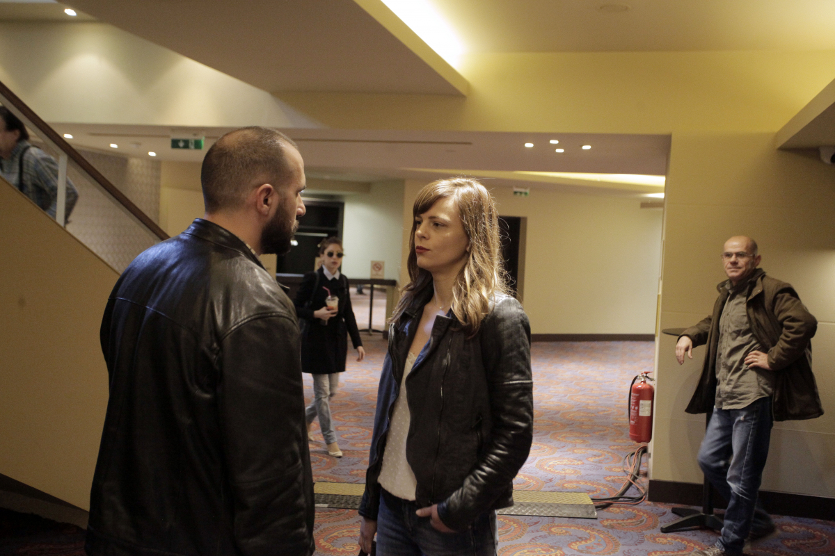 Η Εφη Αχτσιόγλου κατόρθωσε για μια ακόμη φορά να κεντρίσει το ενδιαφέρον των φωτογράφων, αφού επέλεξε ένα αμάνικο και ντεκολτέ λευκό μπλουζάκι, το οποίο συνδύασε με δερμάτινο μοδάτο μπουφάν, τζιν κολλητό παντελόνι και ψηλοτάκουνες μπότες.