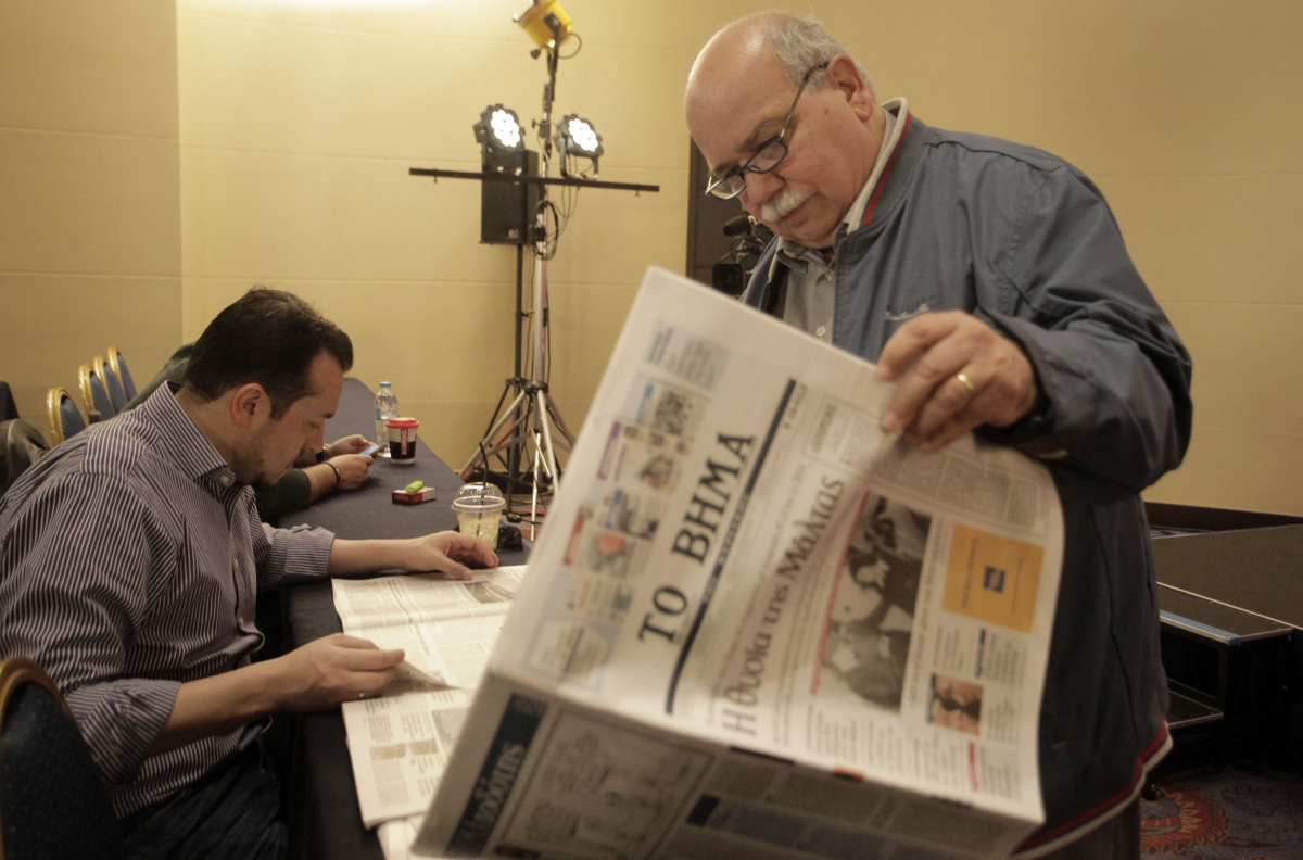 Ο πρόεδρος της Βουλής Νίκος Βούτσης παραμένει σοβαρός φυλλομετρώντας την εφημερίδα «Το Βήμα», το οποίο έχει τον ελαφρώς επικριτικό για την κυβέρνηση τίτλο «Η θυσία της Μάλτας»: